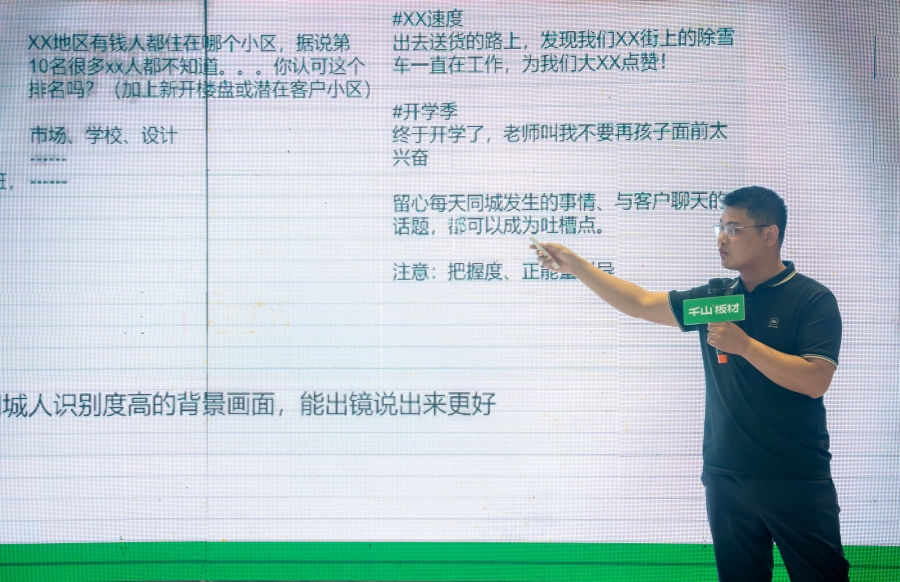 王殿忠經(jīng)理通過《新媒體運營獲客》主題演講,對千山“星海揚帆”計劃的具體實施、新媒體運營方法及抖音流量賦商進行了精彩的分享。