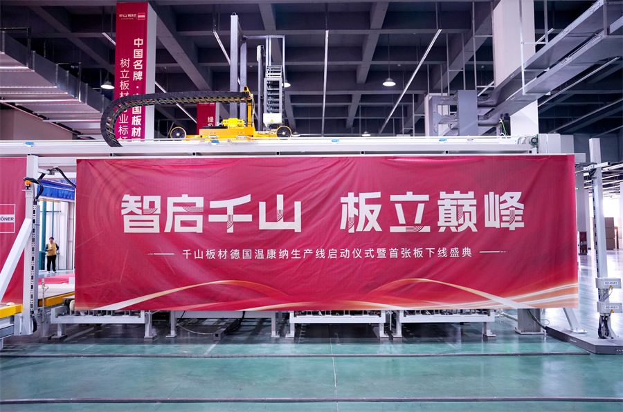 溫康納產(chǎn)線的成功投產(chǎn),是千山對(duì)消費(fèi)者追求健康、高品質(zhì)家居生活的有力回應(yīng)。它不僅標(biāo)志著千山邁入了夯實(shí)制造根基、強(qiáng)化品質(zhì)升級(jí)的新階段,更吹響了以創(chuàng)新技術(shù)驅(qū)動(dòng)品牌持續(xù)向上、實(shí)現(xiàn)高質(zhì)量發(fā)展的進(jìn)軍號(hào)角。 立足新起點(diǎn),千山將始終恪守 “樹(shù)立板材行業(yè)品質(zhì)標(biāo)桿、引領(lǐng)行業(yè)發(fā)展新潮流” 的品牌使命,以更前沿的技術(shù)賦能綠色智造,以更卓越的產(chǎn)品夯實(shí)品質(zhì)根基,為構(gòu)筑美好人居生活貢獻(xiàn)更多的“千山力量”。