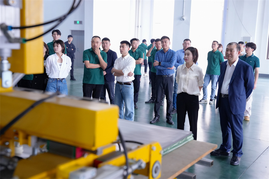 在消費(fèi)升級(jí)的大浪潮下,市場(chǎng)對(duì)板材的品質(zhì)、環(huán)保及個(gè)性化需求日益提升。溫康納生產(chǎn)線的引入,正是千山響應(yīng)市場(chǎng)趨勢(shì)、賦能集團(tuán)發(fā)展、共同為終端客戶創(chuàng)造價(jià)值的有力舉措。千山板材將攜手全國(guó)經(jīng)銷商,將這份“技術(shù)領(lǐng)先”優(yōu)勢(shì),轉(zhuǎn)化為強(qiáng)勁的市場(chǎng)競(jìng)爭(zhēng)力。 聚焦于生產(chǎn)制造環(huán)節(jié)的革新,邱總表示:德國(guó)溫康納生產(chǎn)線以高度自動(dòng)化、精細(xì)化、智能化和穩(wěn)定性著稱。它的引入,將大幅提升效能、加碼品質(zhì),確保千山板材的出廠產(chǎn)品具備高端品質(zhì)的一致性,這也是千山踐行“品質(zhì)過(guò)硬”’承諾最堅(jiān)實(shí)的保障。