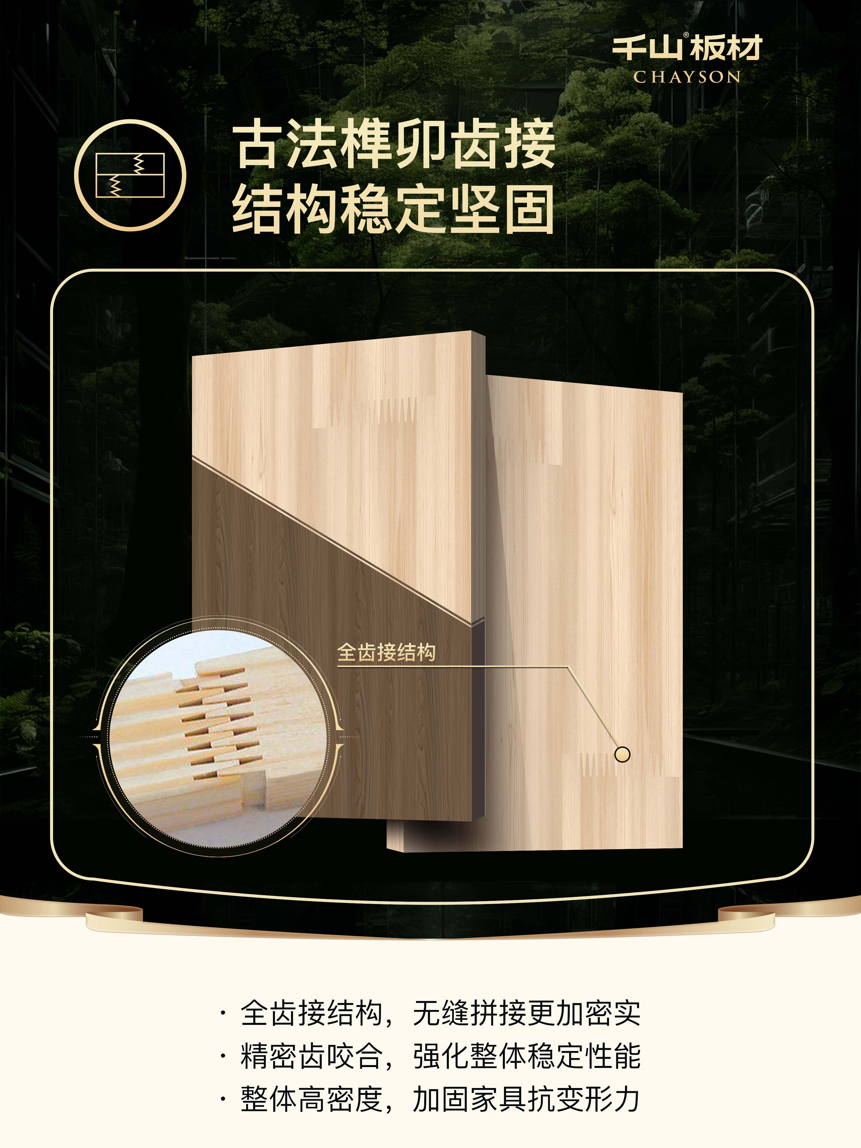 千山原木板采用全齒接工藝,通過精密咬合結(jié)構(gòu)強化整體穩(wěn)定性,既保留木材的自然屬性,又顯著優(yōu)化承重性能,握釘力更強。